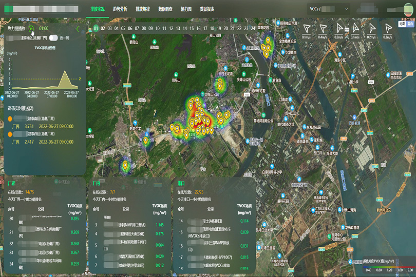 構建全方位、多層次、立體化生態安全監測網絡,集水環境污染溯源預警預測、大氣環境污染溯源預警預測、智慧工地/港口揚塵在線監控、